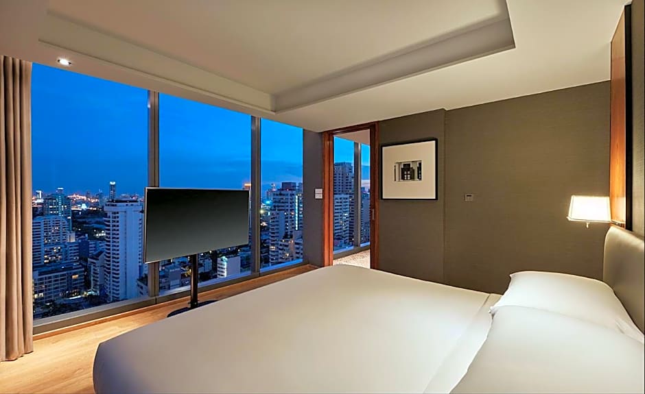 Offering free toiletries and bathrobes, this suite includes a private bathroom with a bath, a shower and a bidet. The spacious air-conditioned suite offers a flat-screen TV with cable channels, a mini-bar, a tea and coffee maker, executive lounge access as well as city views. The unit offers 1 bed.